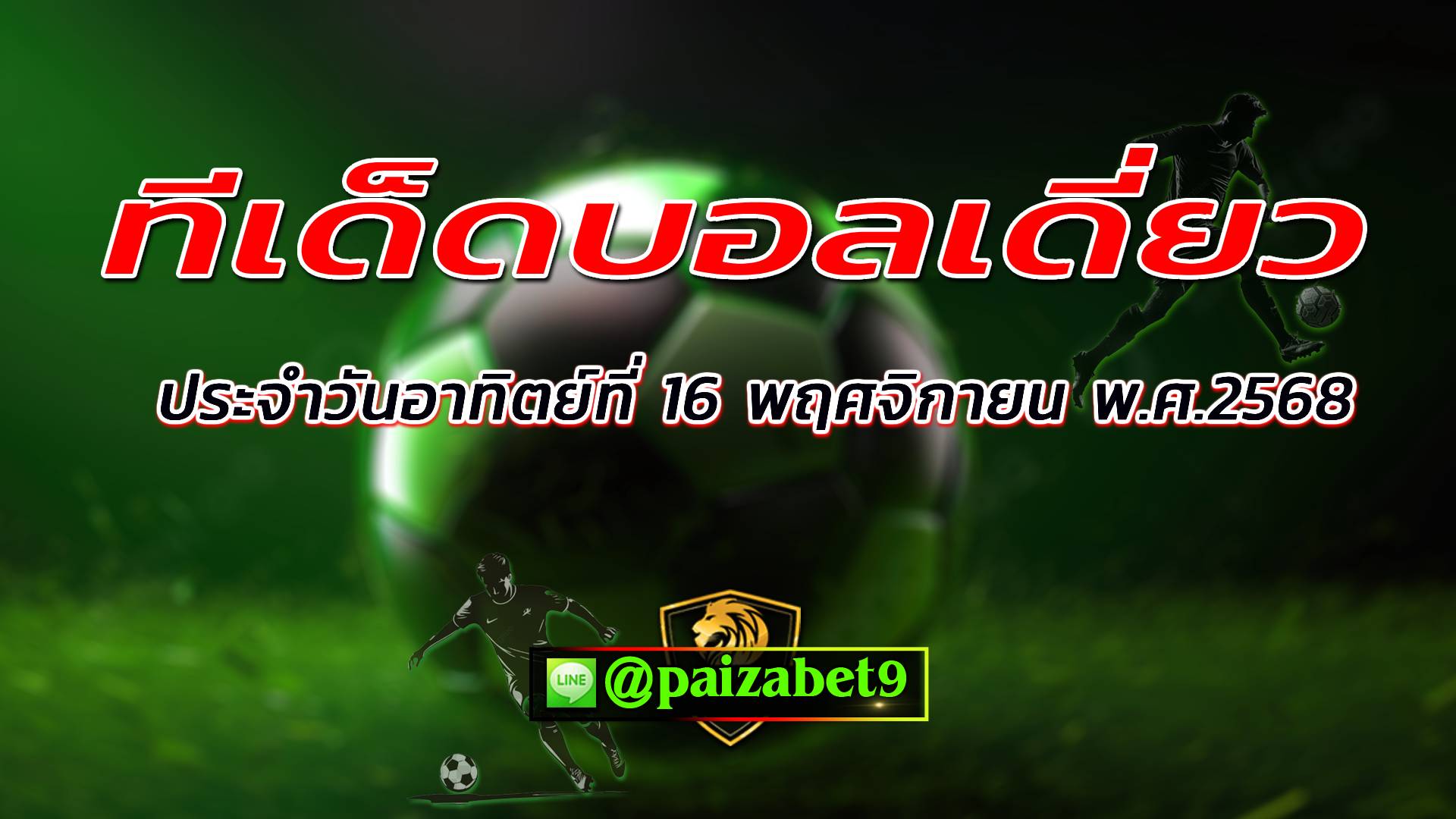 ทีเด็ดบอลเดี่ยว ประจำวันอาทิตย์ที่ 16 พฤศจิกายน 2568